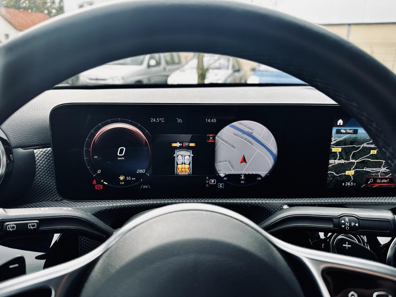 ABS (antiblocage de roues), ASR (antipatinage) et BAS (freinage d'urgence assisté)Accoudoir central avantADAPTIVE BRAKE avec fonction HOLD et aide au démarrage en côte, préremplissage et séchage des freins par freinage en cas de pluieAirbag frontaux conducteur et passagerAirbag genoux conducteurAirbags latéraux (thorax / bassin) avantAirbags rideauxAttention Assist : système de détection de somnolenceAvertisseur de franchissement de ligne actifBoîte à gants éclairéeCaméra de recul avec lignes de guidageClimatisation automatique THERMATIC à 1 zone avec filtre à charbons actifs contre la poussière, la suie et le pollenConnexion Bluetooth pour téléphone portableDirection paramétrique asservie à la vitesseDossier AR rabattable 40/20/40DYNAMIC SELECT avec les programmes de conduite « ECO », « Confort », « Sport » et « Individual »Feux de stop adaptatifsFrein de stationnement électriqueFreinage d'urgence assisté actifI-Size et Top Tether pour les sièges arrière extérieursInterface USB-C dans le vide-poches et dans la console centrale arrièreModule de communication LTE pour l'utilisation des services Mercedes me connectPack AdvantagePack visibilitéPavé tactile TouchpadPrise 12V dans le vide poche de la console centraleProjecteurs hautes performances à technologie LEDRéception radio numérique (DAB)Rainsensor (Capteur de pluie et de luminosité)Reconnaissance des panneaux de limitation de vitesseSiège conducteur avec réglages de la hauteur et de l'approche du siège, de l'inclinaison du dossier, de l'inclinaison de l'assise, de la profondeur de l'assiseSorties d'échappement apparentes en chrome (non fonctionnelles)Système d'Appel d'Urgence Mercedes-BenzSystème de commande vocale et assistant personnel activable grâce à "Hey Mercedes"Système de contrôle de la pression des pneusSystème de stabilisation en cas de vent latéralSystème multimédia MBUX avec fonctionnalités élargies (profils personnalisés, fonctions prédictives, borne Wifi, webradio)TEMPOMAT (régulateur et limiteur de vitesse)Train de roulement confort avec châssis surbaisséVolant sport multifonction en cuir avec boutons tactiles Touch-Control, cache chromé et surpiqûres noiresApple carplay / android auto